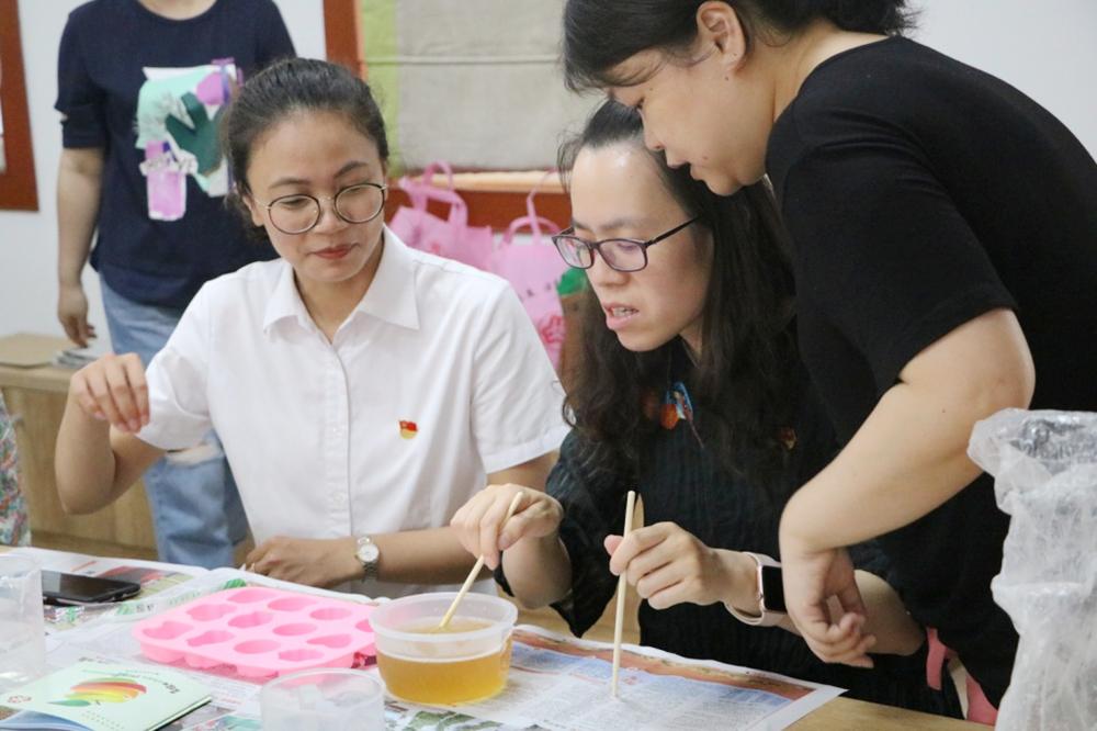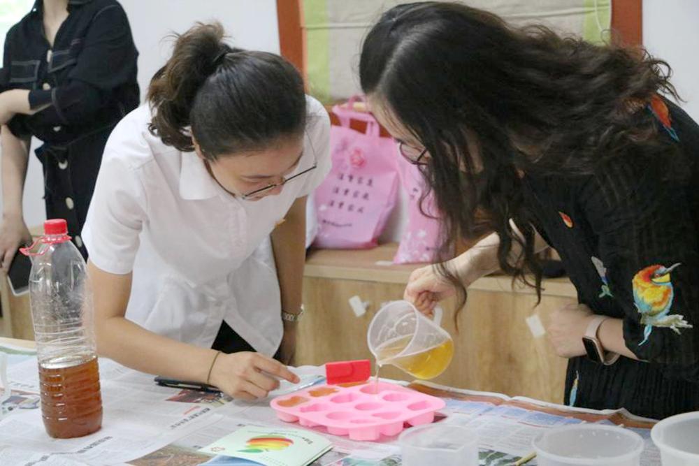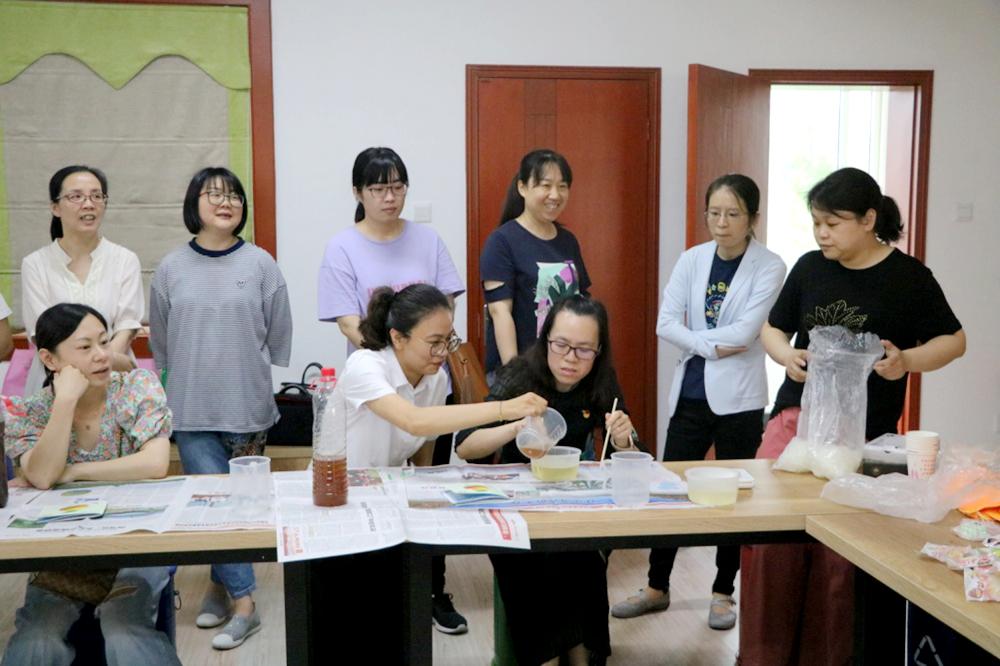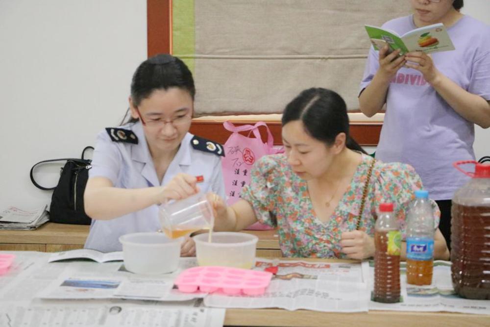 培训会之前,为推进垃圾减量,进一步引导广大妇女和家庭共同做好生活垃圾分类,增强城乡妇女和家庭成员的垃圾分类意识,倡导绿色、生态、健康的生活方式,活动人员准备进行酵素肥皂制作。