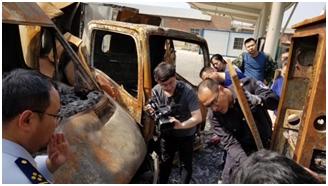 但是,让我没想到的是,就在半年后的2019年4月8日,裕华区消防大队再次打来电话称,石家庄车航充电设施服务有限公司学苑路站发生火灾,四辆新能源汽车不同程度的烧毁,怀疑由上次同品牌同型号的电动厢式货运汽车引起,请求到场技术指导。我接到电话后既无奈又兴奋,有上次火灾认定的“宝贵”经验,我胸有成竹地组织全市火调人员到场进行见学。
