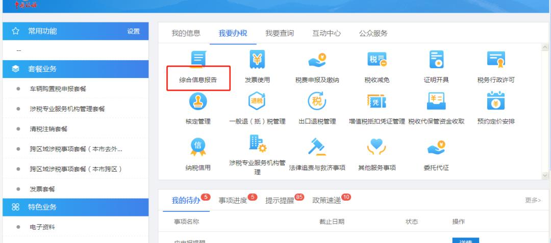 step1. 登录上海市电子税务局,点击【我要办税】,选择【综合信息报告】;