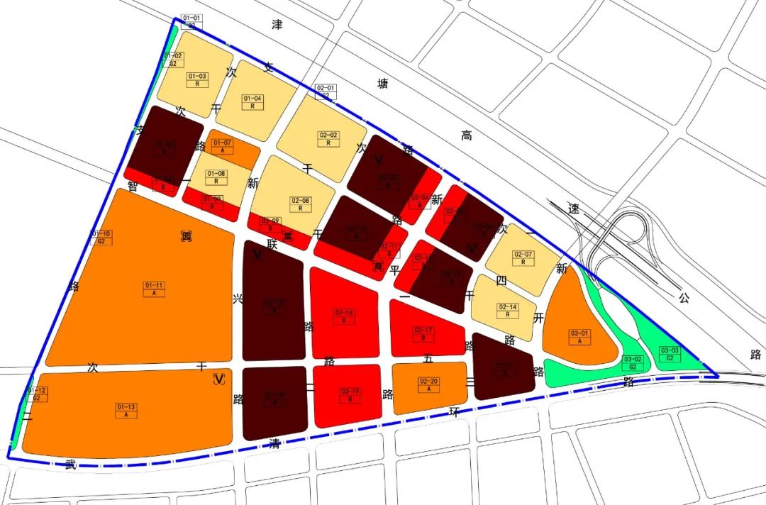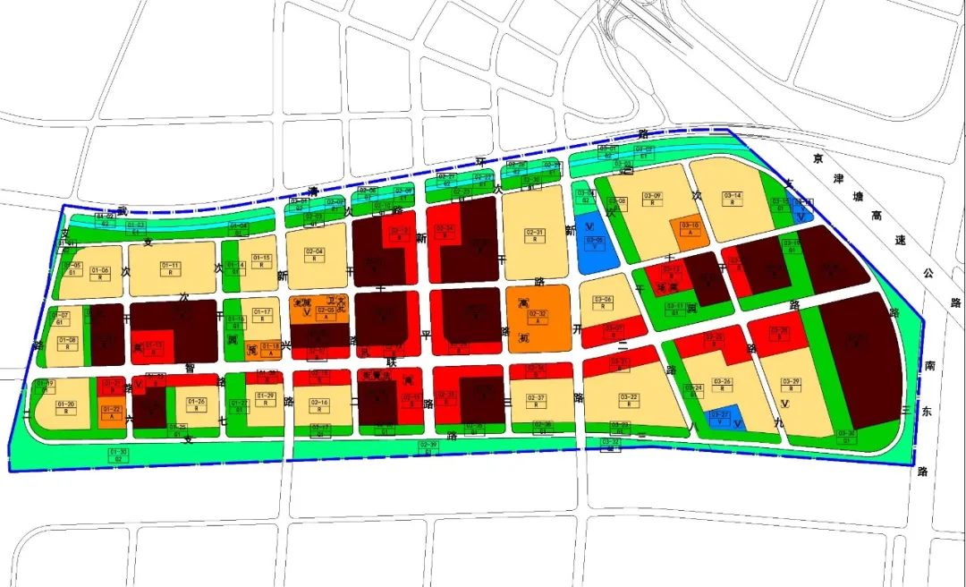 地块四至范围为:北和东至规划支路一、西至规划支路二,南至武清环路,用地面积184.92公顷,涵盖居住、商业、工业、公园绿地等用途。