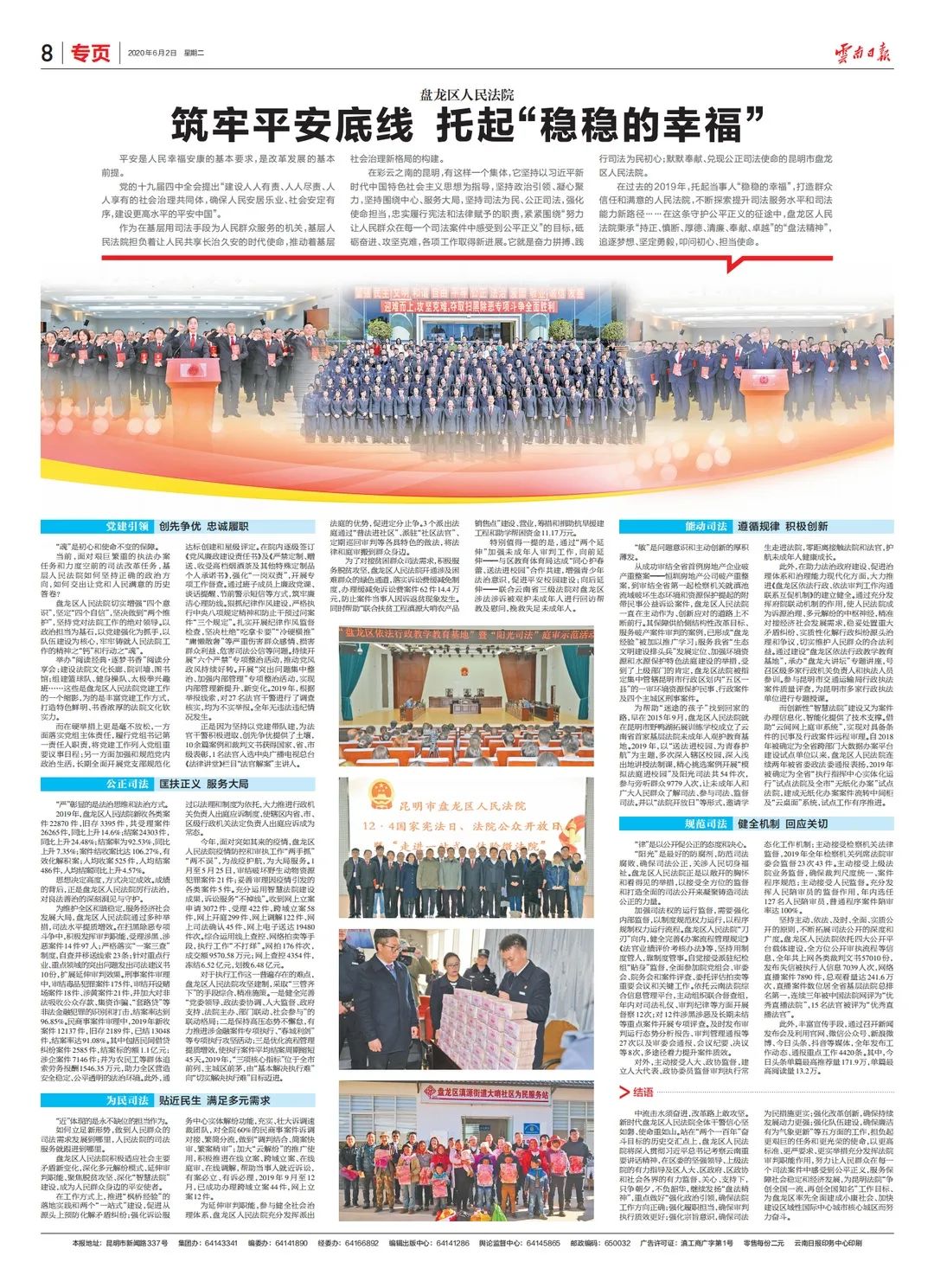 【媒体聚焦】筑牢平安底线,托起“稳稳的幸福” ——云南日报专版刊登盘龙区人民法院工作