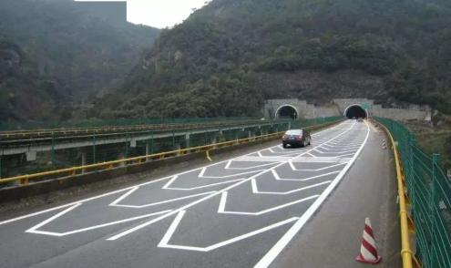 注意:通常隧道的灯光比较昏暗,为了给驾驶员充分的适应时间,通过设置这种特殊的减速标线,使人产生空间压缩的错觉,使驾驶员自动减速。