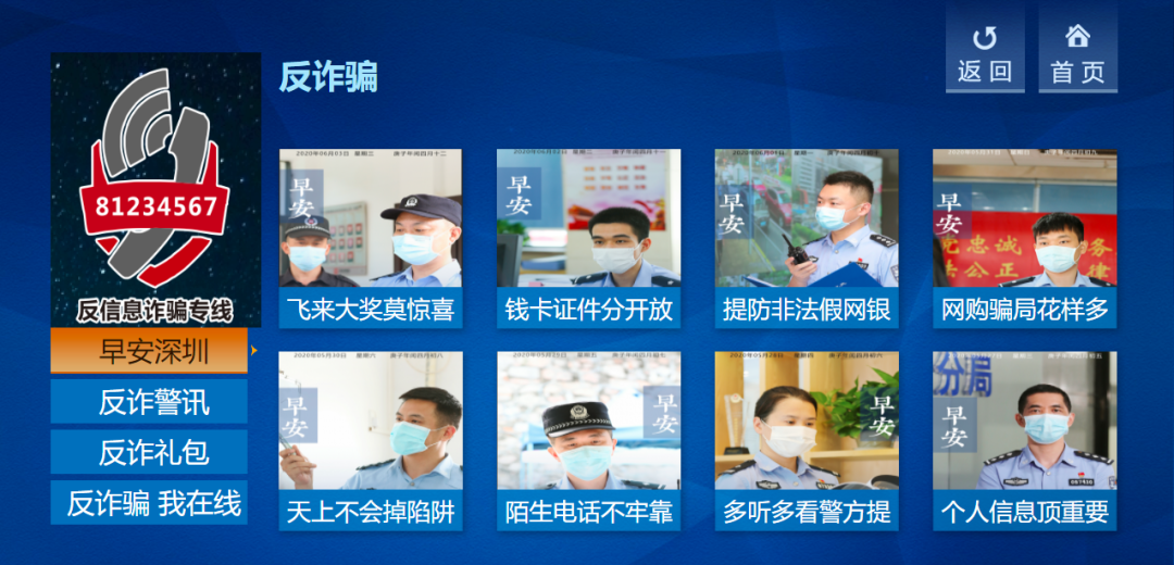 据了解,“福田警察”电视平台开设“反诈骗”“福田警讯”“互动警务”3个子栏目,分设早安深圳、反诈警讯、反诈礼包、反诈骗我在线等8个二级栏目,包含安全常识、便民服务、权威辟谣等各类警务信息。如“反诈警讯”根据诈骗警情特点和发案时空,通报最新诈骗案例,揭露诈骗手法,内容精准到发案社区或小区,更加警醒群众注意防骗。群众有两种方式进入“福田警察”电视平台,一是点击天威视讯电视首页“我的深圳”进入“幸福福田”,便可点击进入“福田警察”平台;二是点击电视首页的反诈骗公益海报,便一键跳转至“福田警察”平台。