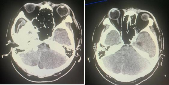 复查的头颅CT给了我们答案:小脑梗死及水肿加重,第四脑室梗阻,出现幕上梗阻性急性脑积水。