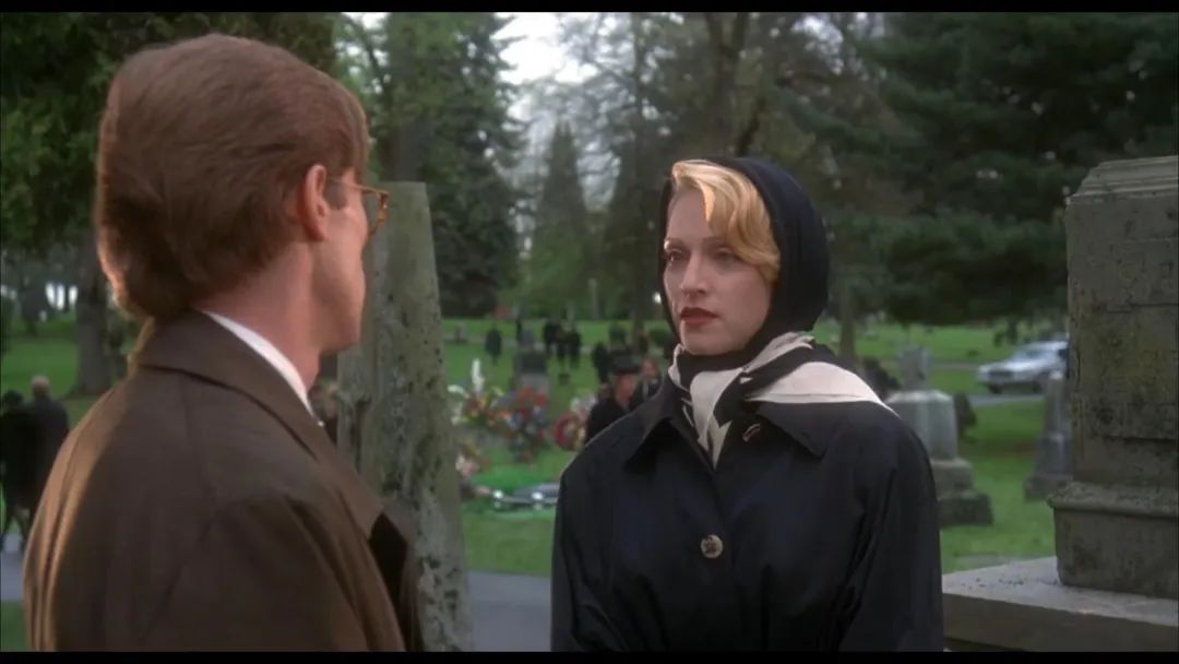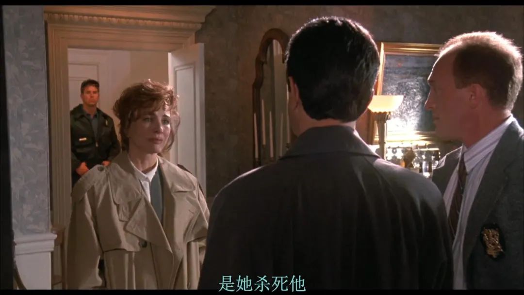 就在这时,一个重要的人物出现了——死者的秘书琼安娜。她一脸憔悴,充满哀伤。哪怕身披厚实的黄色大衣也难掩盖其消瘦的体态。