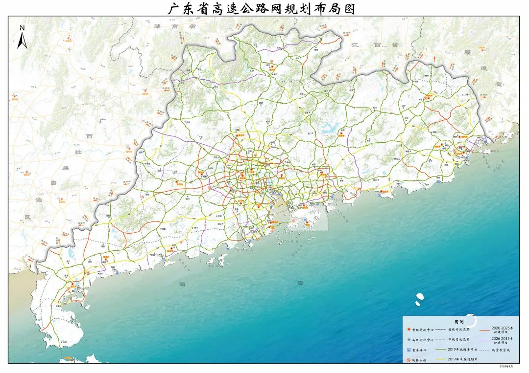 根据《规划》,2020年至2035年,全省高速公路新开工建设里程约3260公里。其中今年计划新开工黄茅海跨海通道、二广高速连山至贺州支线、韶惠高速惠州至龙门段、广州从化至黄埔高速一期、南沙至中山高速等9项275公里,总投资约901亿元。