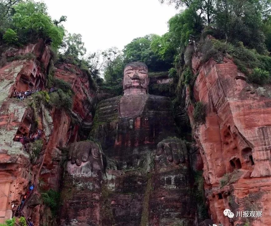令人惊奇的是,大佛并非人工凿刻而成,而是由位于乐山市峨边的4座山峰交叠自然形成的。