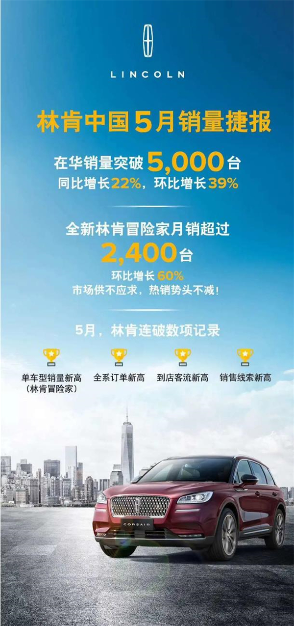 6月第一周,林肯中国主动发布了今年以来首份销量捷报,其中提供的数据显示,5月份销量突破了5,000台,同比增长22%,环比增长39%。