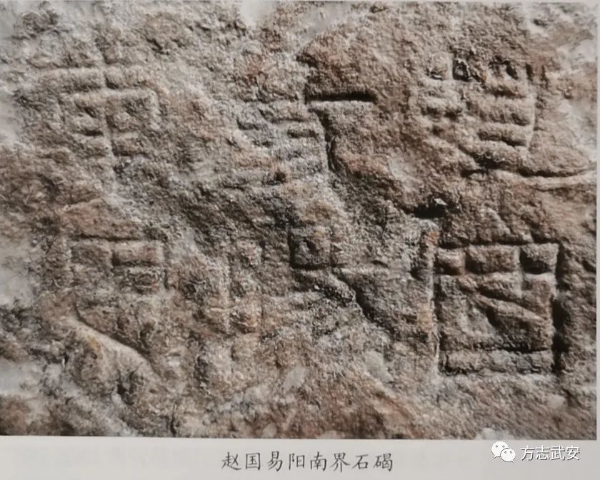 赵国易阳南界石碣位于活水乡口上村东老安庄小台地上。碣为白砂岩质料,卵石状,高约1.1米,宽约2.2米,厚约1.3米。南侧阳面阴刻隶书竖3行,每行2个字,共6个字“赵国易阳南界”。每字大小5至6厘米。石刻书丹为汉代隶书风格。