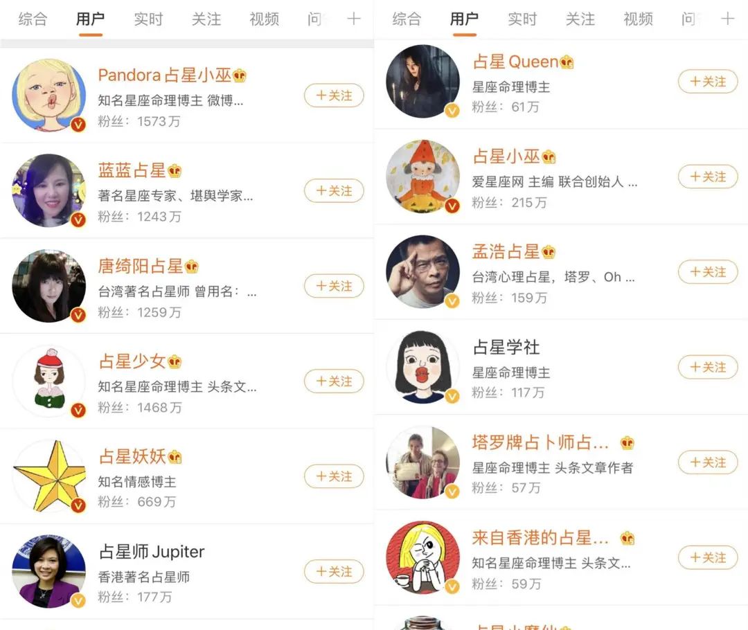 用户盘子大,占星测运市场的发财机会就多,随之而来的便是激烈竞争,从越来越多的占星博主的出现,到逐渐起势各种星座网站、App和小程序,可见一斑。
