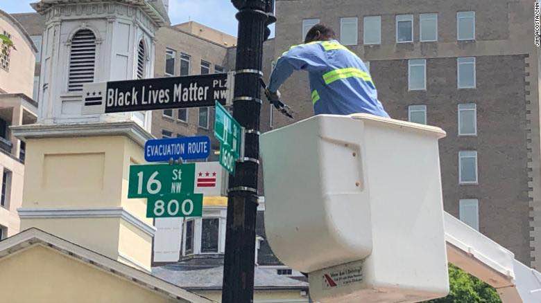 当地时间6月5日,华盛顿特区市长穆里尔·鲍泽为一个新路牌揭名。该路牌被命名为“黑人的命也是命”,离白宫近在咫尺,中间只隔着拉斐特公园。鲍泽同时还下令用明黄色油漆将“黑人的命也是命”几个字写在马路上。“我们只想站在一起和平示威,说明在美国你可以和平地聚集,向政府表达你的悲痛,并要求改变,”鲍泽表示,华盛顿特区的人民可以用和平的方式聚集在街头进行抗议。
