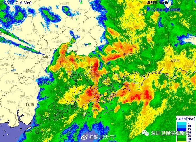从云图上看,“神兽”盘旋在珠三角地区,现在最强降雨在光明西部、龙华北部、南山区,这附近的小伙伴们注意咯。