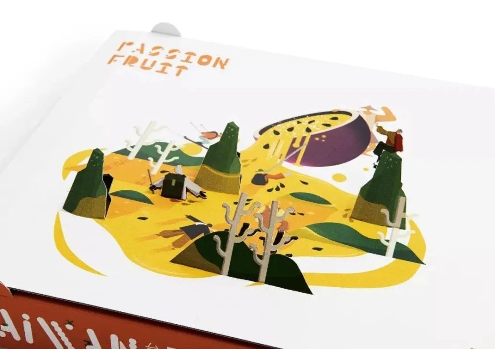 小果子一个一个排排站,上头完全上头!“100%”百香果的包装设计脱颖而出,因为它不仅是一种稳定且经过深思熟虑的包装,可以非常安全地运输,而且还具有模块化的内部隔层系统。同时,盒子还可以作为销售点,传达食谱并讲述水果的种植。哇!似乎已经闻到水果清香啦!