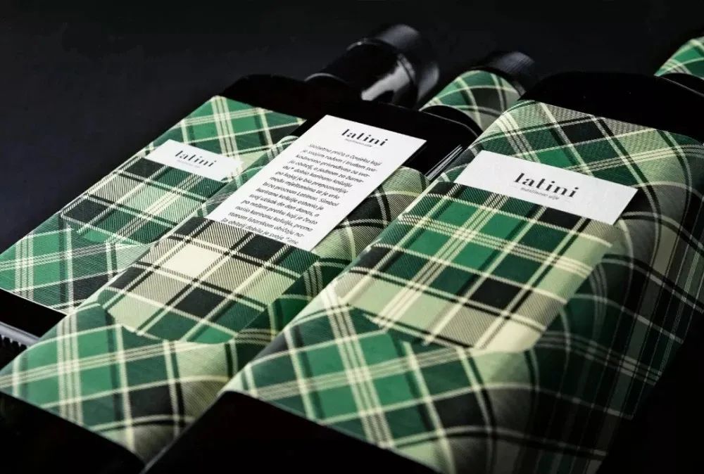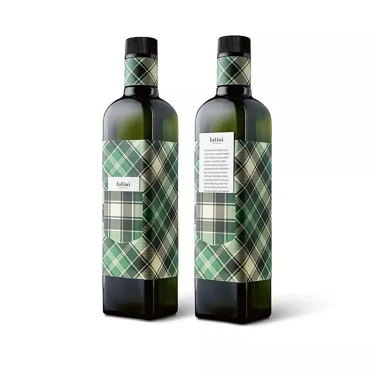 Latini橄榄油的包装设计巧妙地结合了品牌和时尚界的名言。犹如一个优雅的绅士向你发出邀约!标签采用了漂亮的格仔恤衫的外观,绿色的色调与瓶中橄榄油的色调相匹配。隐藏在小口袋中的产品信息延续了这种纺织品外观。