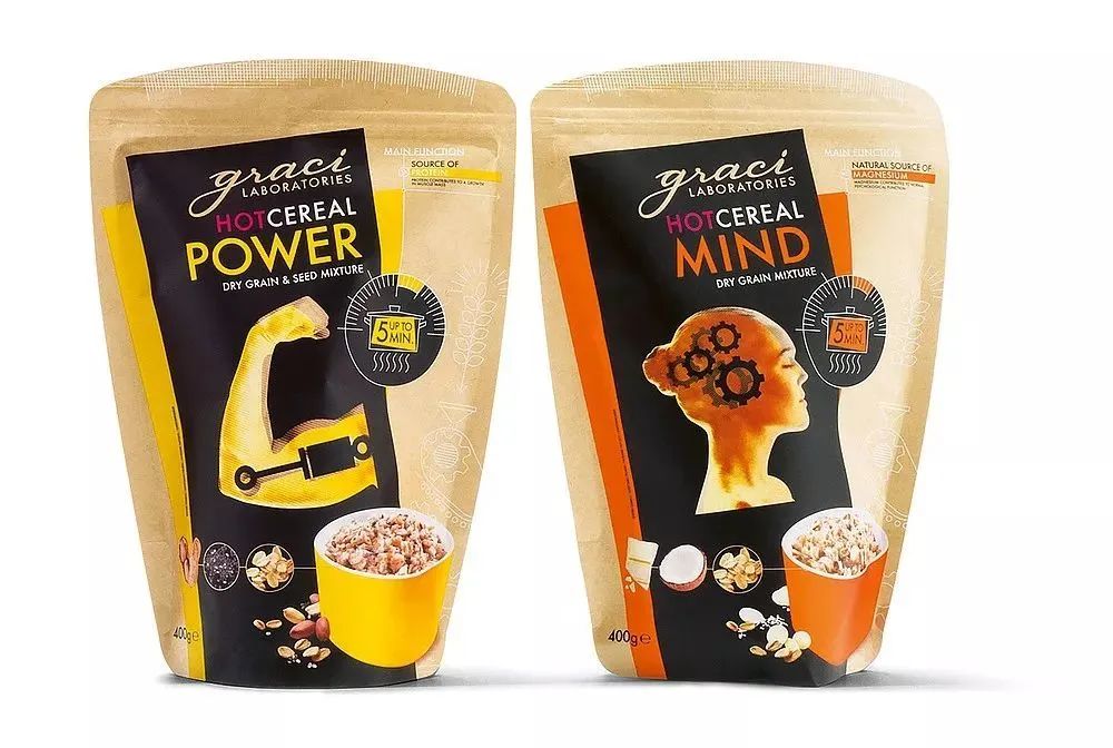 拉脱维亚早餐谷物制造商Graci的这款产品在包装材料上选择了环保、未漂白的牛皮纸,体现了品牌环保、健康的理念。以现代、多彩、有趣的新方式传达了大量重要的信息,表现了什锦麦片的益处超级多!