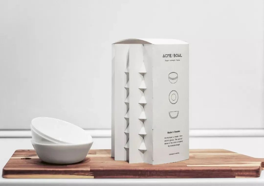 这是来自中国本土的品牌,由华东师范大学设计学院的团队主创,包装以实用与推广餐具为出发点,其创意点体现在严密的构造与材料的少即是多原则运用上。包装盒颜色上采用素白,更好衬托了产品瓷碗本色。