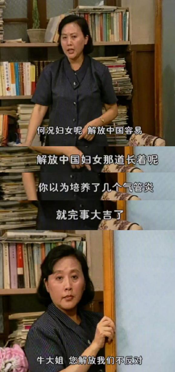 牛大姐说,解放妇女的道路还长,根本不是培养了几个妻管严就万事大吉。