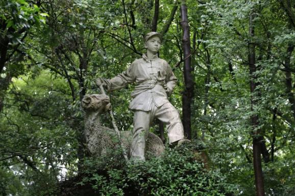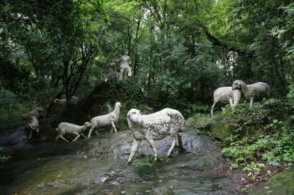 雕塑群用英气自信的孩子和生动活泼的羊群为形象,展现出当年惊心动魄、跌宕起伏的英雄故事,赞颂这位孩子勇敢无畏的爱国主义精神。