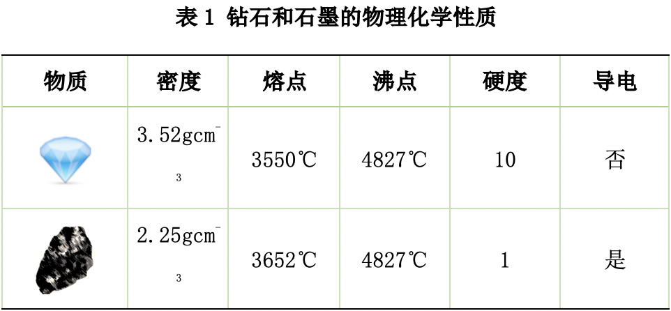 钻石和石墨的原子结构图 图片来源:https://www.baidu.com/