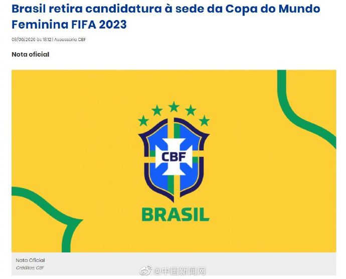 @中国新闻网 6月9日消息,据巴西足协官网消息,在经过全面评估后,巴西决定放弃申办2023年女足世界杯。巴西足协在官方声明中表示,承办这样的赛事需要承担巨大的责任,一系列因素导致放弃申办的决定产生。目前,申办国只剩下联合申办的澳大利亚和新西兰,以及单独申办的日本、哥伦比亚。