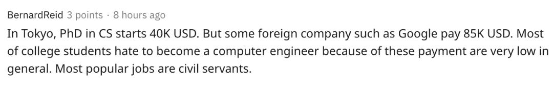 而在网友的回复中,曝出了世界各地这一大热专业的待遇情况,有的国家一年能开出50万美元(350万人民币),有的却不如普通公务员。