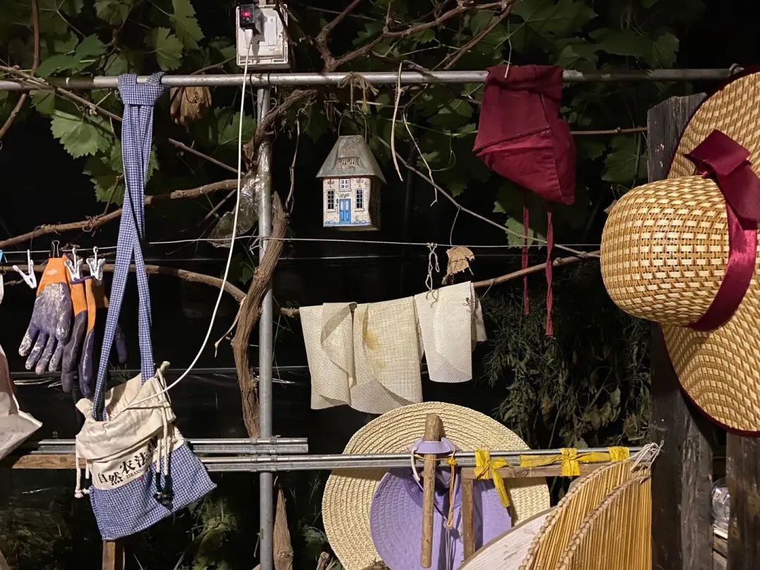 农场入口在路边不及人高的篱笆中间,一扇轻易就能推开的柴门。路上太黑,我们打开了手机电筒,白光照亮脚下凹凸不平的田埂和旁边的草丛树影。跟随棠棠穿过曲折的小径,来到一座亮着灯的塑料大棚前。这个大棚不是用来种菜的,而是承担了餐厅、储藏室,还有临时休息处的功能。门帘外一侧有一口井,提供用水来源,另一侧拴着一只小田园犬,正趴着睡觉。