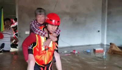 老奶奶被洪水围困