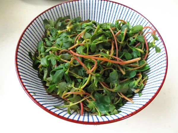 做法:①马齿苋摘除老根,放入水中洗净泥沙,切小段,生姜洗净切丝、大蒜洗净切粒;②水烧开,将马齿苋放开水中焯熟,冷水过两遍;③将过完冷水的马齿苋、生姜丝、蒜粒放盘中,加入适量陈醋、酱油、白砂糖、盐调味即可。