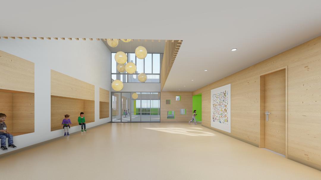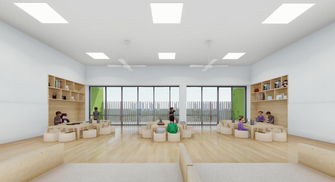 户外环境以“阳光童年,绿色生活”为主题,整体构成由圆形变化拆解而来,戏水池、戏沙池、生态绿廊、中庭休闲区、组合运动区、游乐区、种植园地等,整个幼儿园充满灵动和活泼的气息,孩子们在舒适、自然、生动、活泼的园所环境中其乐融融、快乐生长。