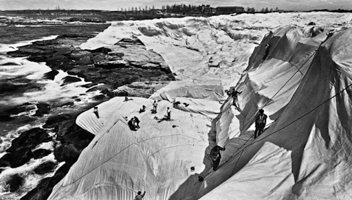 于是乎,在“看见”与“看不见”之间,产生了一条模糊的界限,而克里斯托的艺术就在这条界限的模糊地带不断衍生发展。