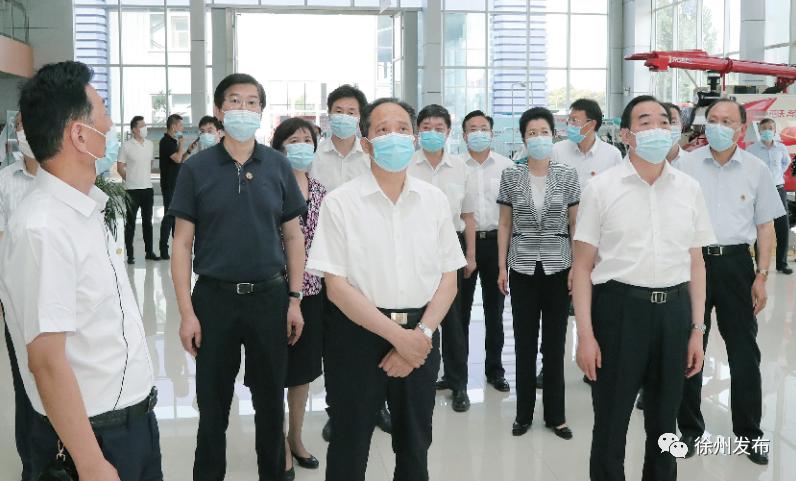在徐工挖掘机事业部,检查组一行走进车间,听取企业工作汇报,参观农机生产线。