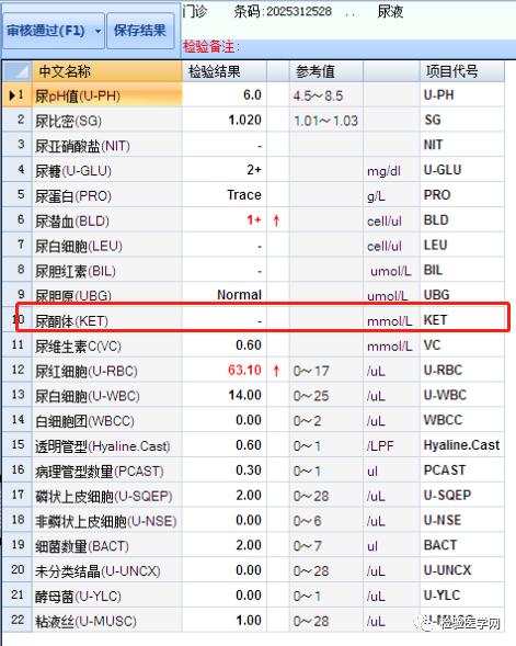 最后我还是打电话咨询了一下临床医生患者的情况,医生告诉我患者入院时呈糖尿病酮症酸中毒昏迷状态,初入院时,我们给病人开了尿常规检验,但是你们的检验结果是尿糖2+,尿酮体阴性,患者经过积极的降糖药物治疗,2天后我们复查血糖已经降至9.8mmol/L,患者症状也有了好转,但是复查的尿常规结果显示尿糖2+,尿酮体3+,尿酮体反而变成强阳性了,不知道你们的结果是怎么查的,是不是搞错了……
