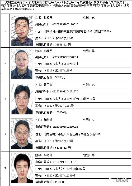 原标题:《桂东县人民法院发布2020年第三期失信被执行人名单》