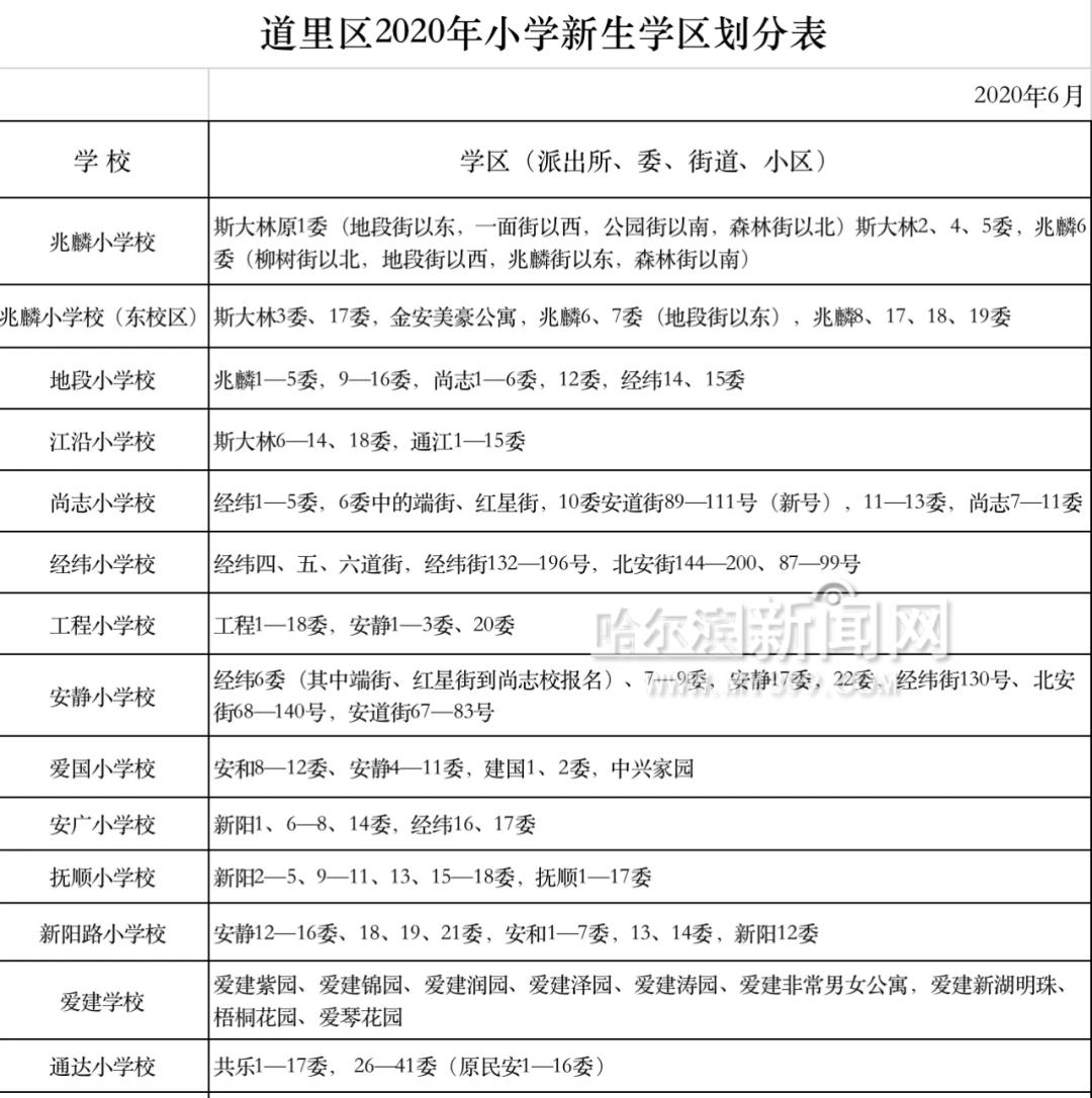 12日, 记者从道里区教育局获悉,道里区2020年小学学区划分情况和小学升初中对口学校情况已公布。