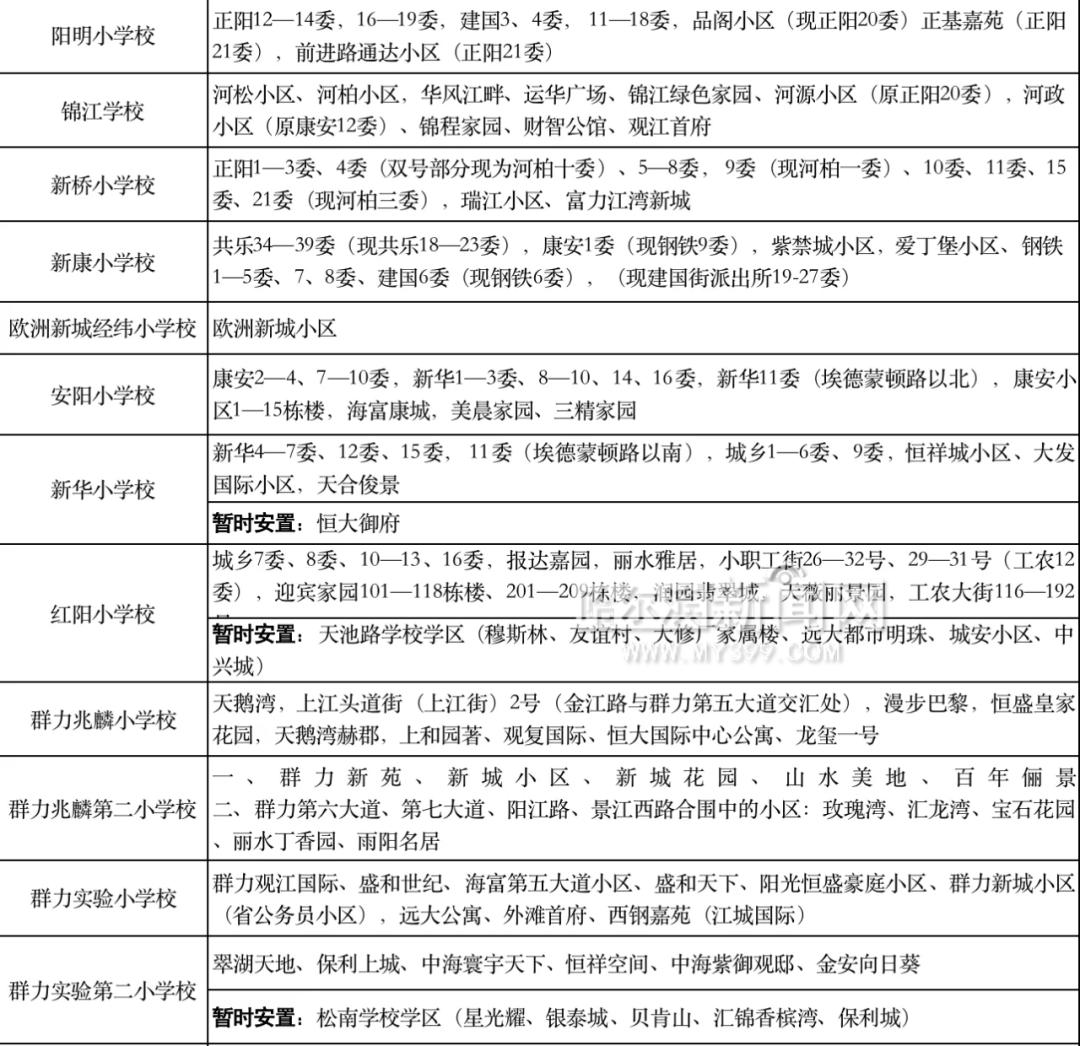 抚顺小学校、群力兆麟小学校、群力实验小学校、爱建学校、东湖路学校2020年入学的新生年级和其它新年级转入学生的住宅学位实施锁定。
