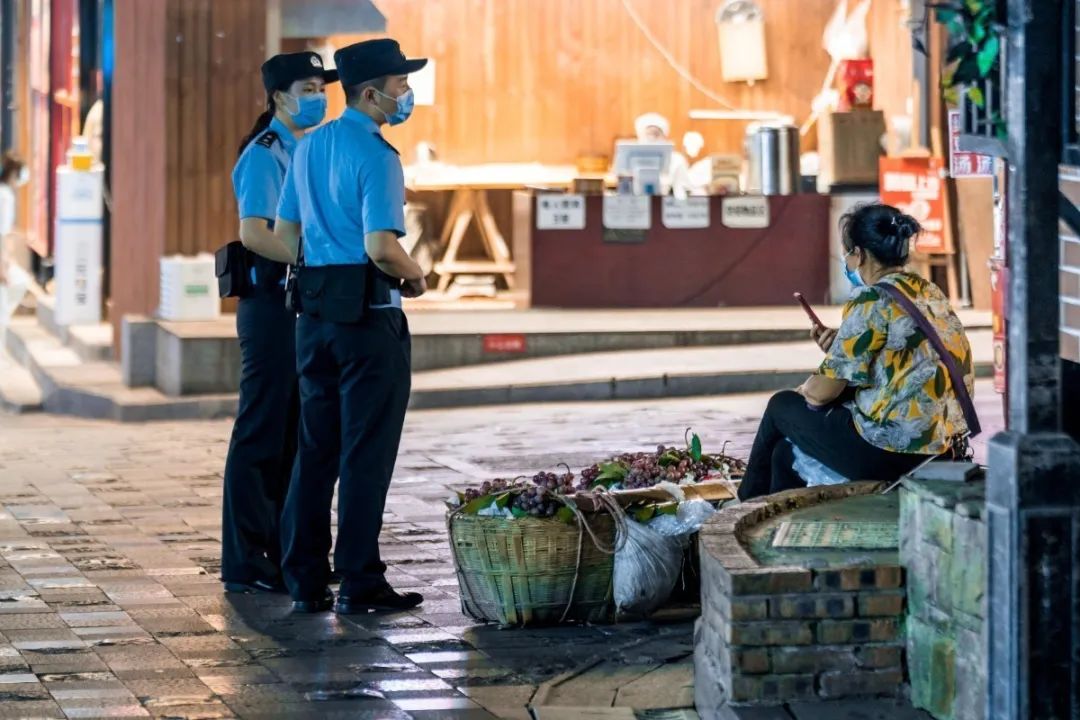6月7日19时许,刚刚吃过晚饭的重庆市公安局渝中区分局大阳沟派出所民警张潇和陈艺颖“披挂”整齐,准备“逛夜市”。新冠肺炎疫情发生以后,较场口夜市一度沉寂。近日,夜市的人多了起来,生意好了起来,但一些小偷小摸也活跃起来,纠纷也多了起来。大阳沟派出所主动加强经营高峰时段巡逻管控力度,安排民警参与巡逻,并对消防安全、治安秩序进行检查,实施夜间“警灯常亮”工程。
