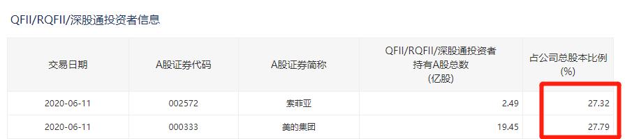 深交所网站数据显示,这两天,索菲亚和美的集团继续被外资抢筹。截至6月11日,美的集团和索菲亚的外资(含QFII、RQFII、深股通投资者等)持股比例分别高达27.79%和27.32%。
