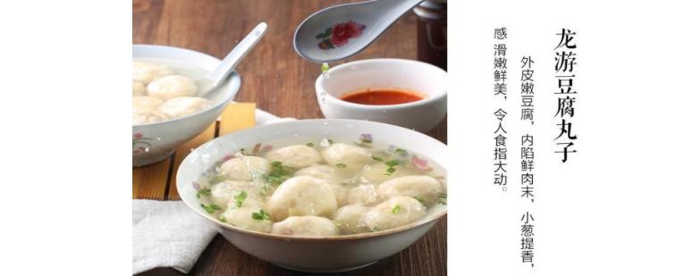豆腐丸是龙游几千年的纯手工传承美食,其原料以豆腐和猪肉为主,制成后形似圆球,色白如雪,如明珠悬浮于汤汁之上,汤汁五味调和,连汤入口,嫩滑且香味四溢,可谓“色、香、味”俱全。