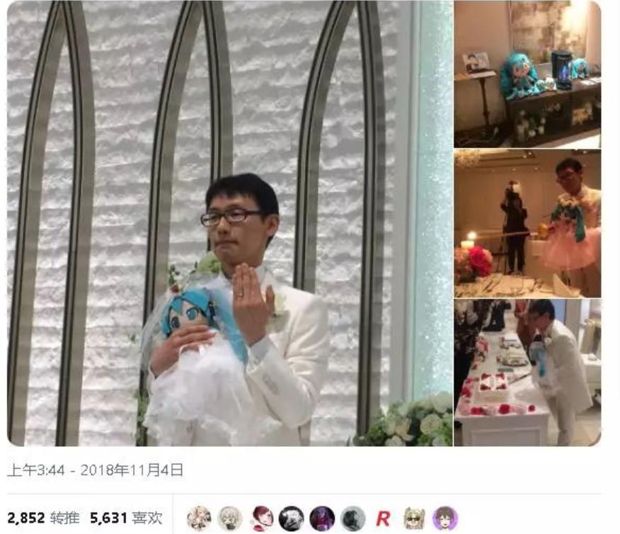 2018年,日本一位35岁的男性公务员Akihiko Kondo(近藤明彦),耗费17500美元(约合人民币12万元)与16岁的虚拟偶像初音未来“喜结连理”。
