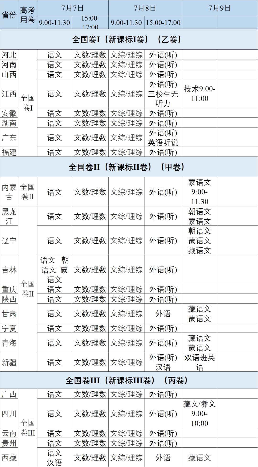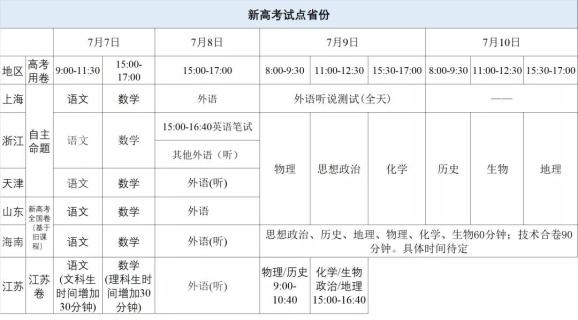 各省份最新高考时间
