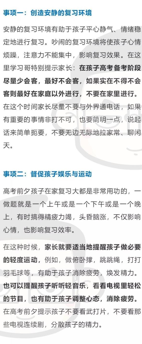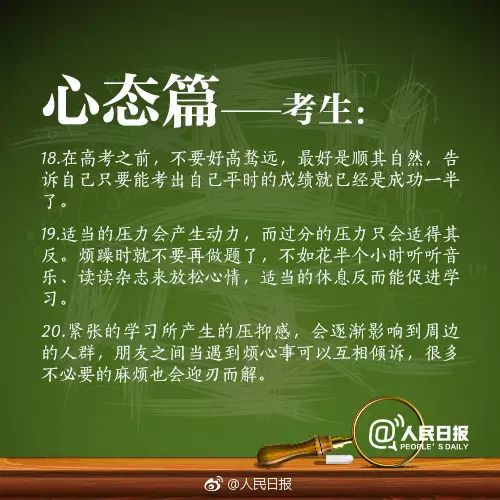 今天为大家分别整理了给家长和考生们的备考建议、减压方法、考前注意事项及饮食安排,助力考生2020冲刺高考!