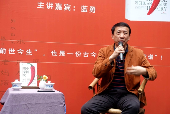 蓝勇在“川菜的前世今生”新书分享会现场与讲述分享川菜历史。受访者供图 华龙网-新重庆客户端 发
