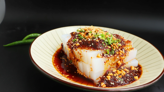 川北凉粉兴于南充,现在已经是川味小吃的精品,全国各地的川味饭馆,几乎无一例外,都有这个东西,大多数当作凉菜入谱。既可作单味小吃,也可作下酒菜,一般宴席上,常与泡菜、卤肉一起作压桌碟,开胃菜。川北地区作为川菜的一个大区,创制出不少精品,盐皮蛋、陈皮牛肉、蒸凉面、菜豆花,但知名度最高的,还是这个白嫩红亮几点绿、麻辣酸香引馋涎的川北凉粉。凉粉好,调料也要好。辣椒要香,花椒要麻,姜葱要鲜,大蒜要细,用保宁醋,麻辣酸鲜俱备,拌出来的凉粉才美。