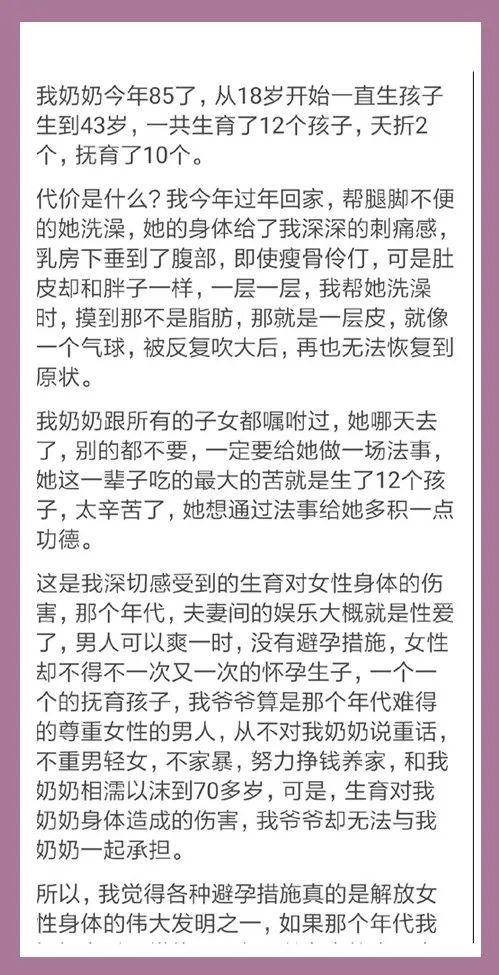 发生性行为是人类的本能,但频繁生育是拖累女性的沉重枷锁。