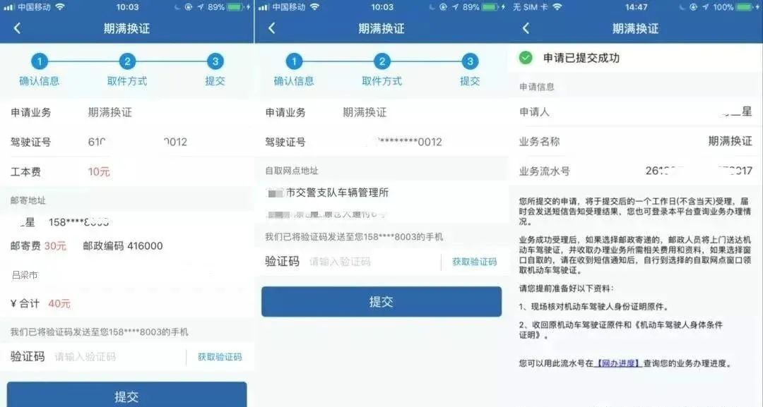 三、用户一旦在互联网提交期满换证申请,不再受理该业务退办,如果用户拒绝签收或者超过一个月未到指定网点取证,系统将自动把用户加入互联网黑名单哦!用户将不允许办理网上机动车和驾驶证相关业务。