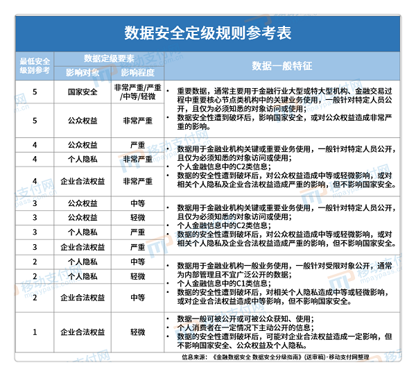 数据安全共五级内含个人金融信息安全类别