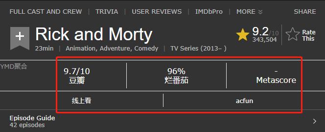 当然,也有一些剧集是国内外公认的牛逼,比如 《 瑞克和莫蒂 》 。