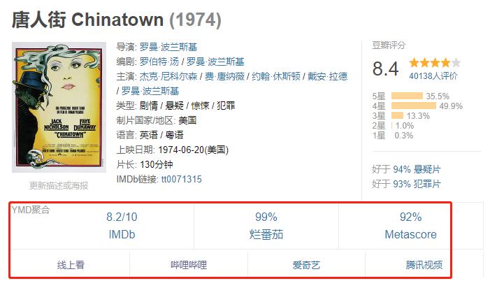 那么世超今天就给大家推荐一个超级省事儿的 Chrome 浏览器插件 “ YMD聚合电影评分 ” !