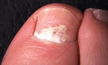 灰指甲也分很多类型,如果是这种白色浅表型的灰指甲,因为感染部位比较浅表,外用「5%阿莫罗芬甲搽剂」通常就足够治愈了。