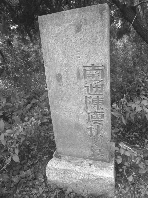 这是一座两进院落,第一进的东头竖着一块青灰色花岗岩石碑,上刻“民族正气”四个大字,碑文上记载:“陆军第一百十一师在常故师长获三公率领下,转战于鲁苏豫皖六载,于兹我忠勇将士为国牺牲者,达五千余众,噫,其何悲壮义烈耶!”再入内是“烈士公墓”塔,塔后便是墓地。墓地里长满了齐腰高的杂草,拨开草丛,我看到了一排又一排或有碑或无碑的坟头,似乎望不到尽头。终于,在找了近三分之二的墓地后,我发现了陈瘦秋的墓碑,碑石正面刻着“南通陈瘦秋之墓”及中英文诗句,背面刻录了孙卜菁写的碑文:
